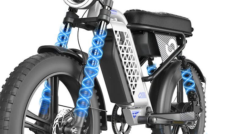 O ClipClop L1 Pro combina um motor 48V 1200W, uma bateria de 48V 40Ah e pneus grossos 20×4.0″ para até 60 milhas de condução potente. A suspensão dupla, 7 velocidades Shimano e os freios a disco hidráulicos mantêm cada viagem suave, segura e controlada.