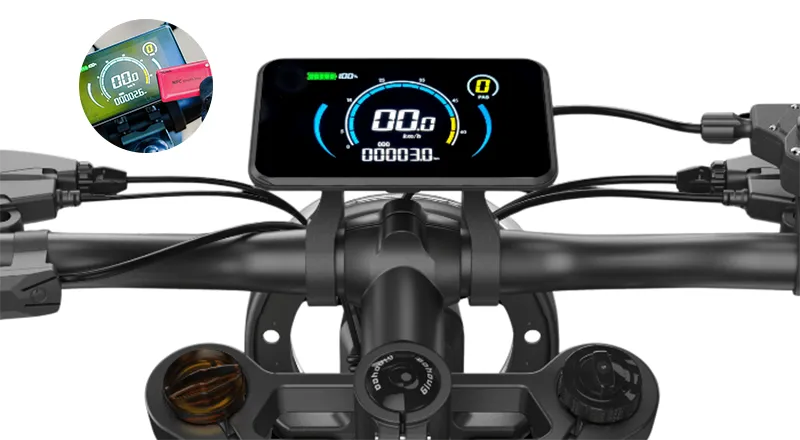 O ecrã LCD exibe velocidade, nível da bateria, odómetro e outras informações de condução para uma utilização conveniente.