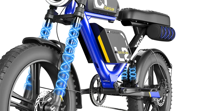O amortecimento duplo proporciona um conforto incomparável. Desfrute de passeios suaves na cidade ou em trilhos com um controlo reforçado.